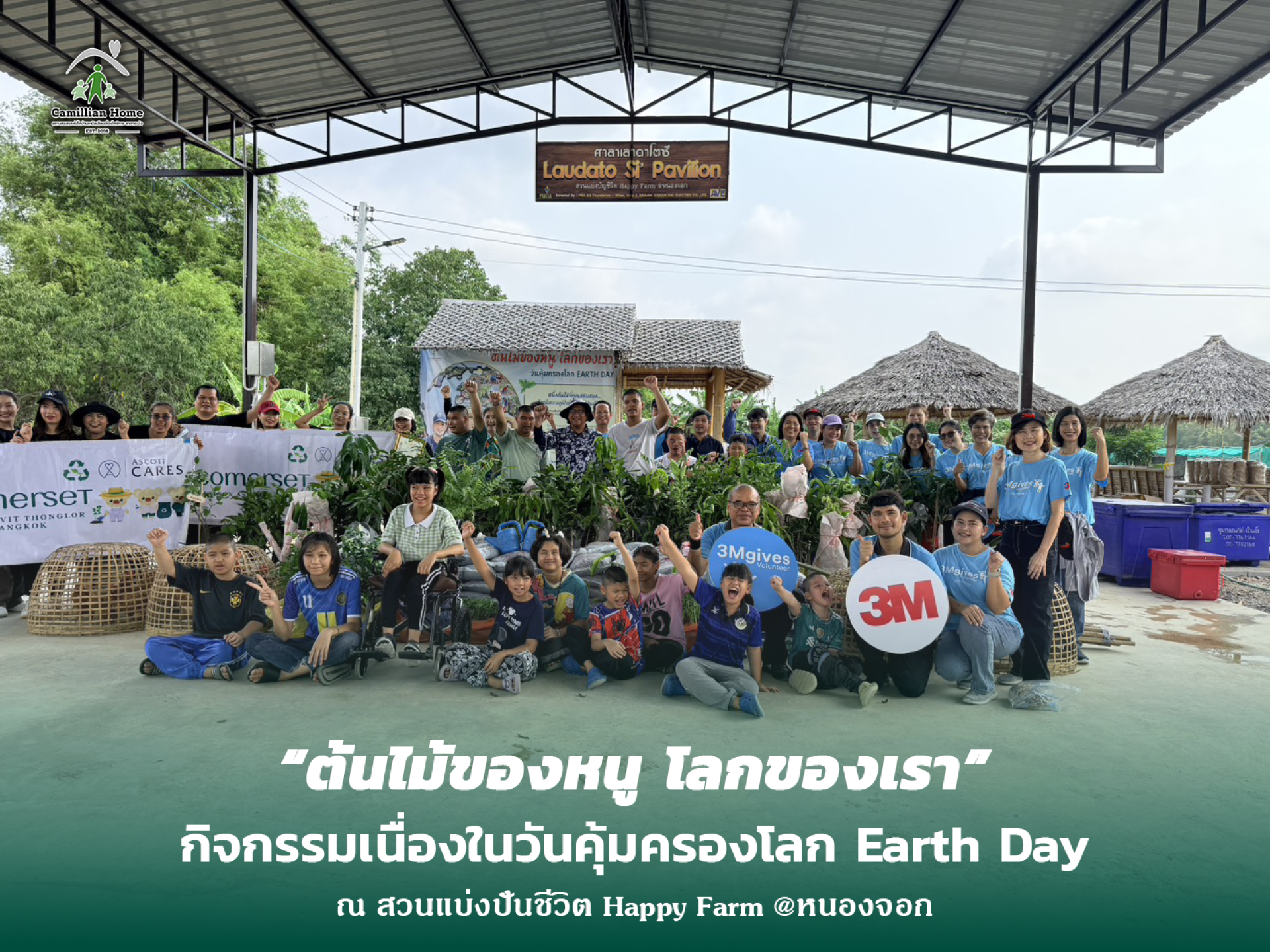 เนื่องในโอกาสวันคุ้มครองโลก บ้านคามิลเลียนเพื่อเด็กพิการ ได้นำเด็กๆ เจ้าหน้าที่ และพี่ๆอาสาสมัคร จาก บริษัท 3 เอ็ม ประเทศไทย จำกัด, Somerset Maison Asoke, Somerset Sukhumvit Thonglor  เข้าร่วมกิจกรรมปลูกต้นไม้ ณ สวนแบ่งปันชีวิต Happy Farm @หนองจอก โดยบรรยากาศของกิจกรรมเต็มไปด้วยความอบอุ่น ความร่วมมือ และรอยยิ้มของทุกคนที่ได้มีส่วนร่วมในการดูแลและฟื้นฟูสิ่งแวดล้อมร่วมกัน