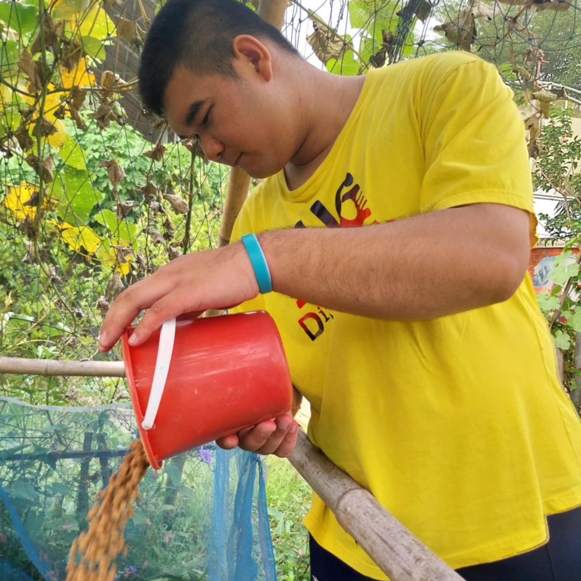 Create a learning process to use horticultural treatment to put into practice, production that transmits the consumption of organic vegetables. The learning activities in the agricultural garden aim to develop for behavior modification, physical, mental, mental and living with nature, which will make children with disabilities in Camillian home have fun activities, not boring. It also helps to restore the muscles in the body of children with disabilities to be stronger. Horticultural therapy will contribute to improving the quality of life for children with disabilities at Camillian Home. Consumption of organic vegetables is the eating of food produced by children with disabilities by themselves, resulting in learning the production, care, storage and consumption process. They are proud of their own work, value themselves, and are ready to develop into a person with complete value and continue to benefit others.