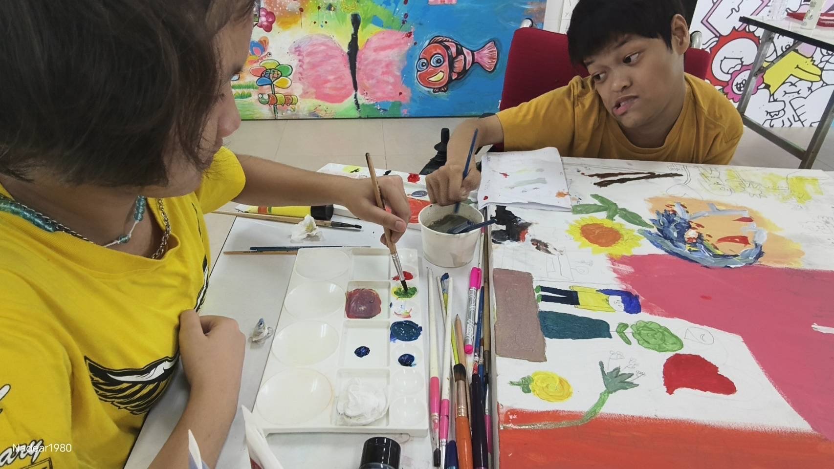 The objective is to enable children with disabilities to concentrate and have more equanimity. So that they will have the opportunity to create a self-awareness that is evident to the person they see. We will use their artwork to make items such as mugs, bags, and shirts. As a souvenir for those who visit Camillian Home, this will be another way to raise funds to support and help children with disabilities. This is an activity that instills in children with disabilities self-esteem.